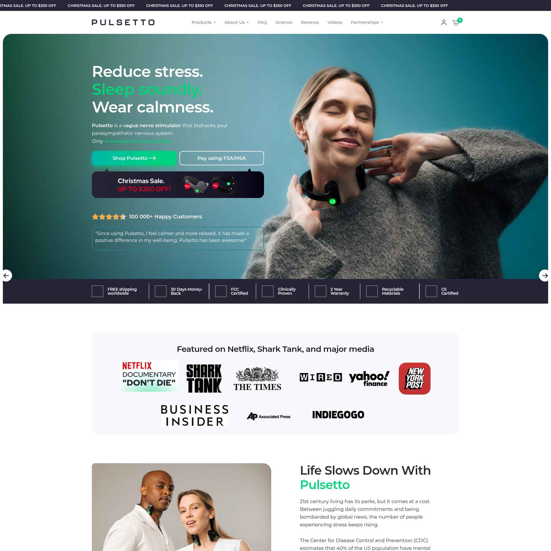 Reduce stress. Sleep soundly. Wear calmness. Pulsetto is a vagus nerve stimulator that biohacks your parasympathetic nervous system. Only 4 minutes to reduce stress.